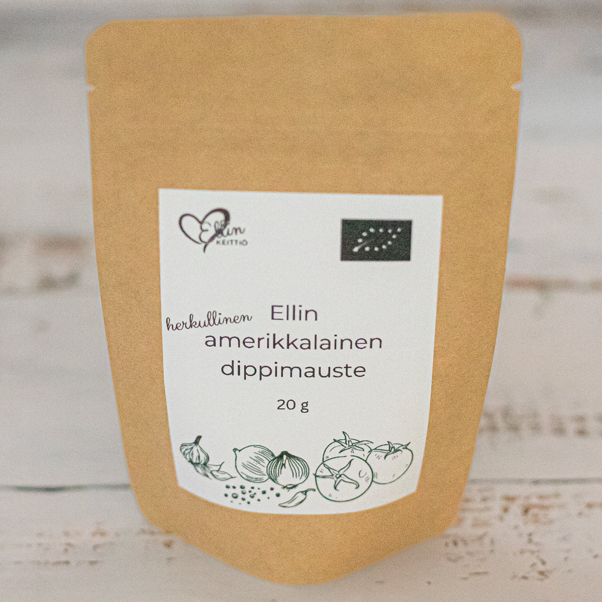 Sano siis hyvästit sokerilla, arominvahventeilla, paakkuuntumisenestoaineilla ja muilla “mitä ihmettä tämä on” -ainesosilla täytetyille kaupan dippimixeille ja hemmottele makunystyröitäsi Ellin luomulla dippimausteella!