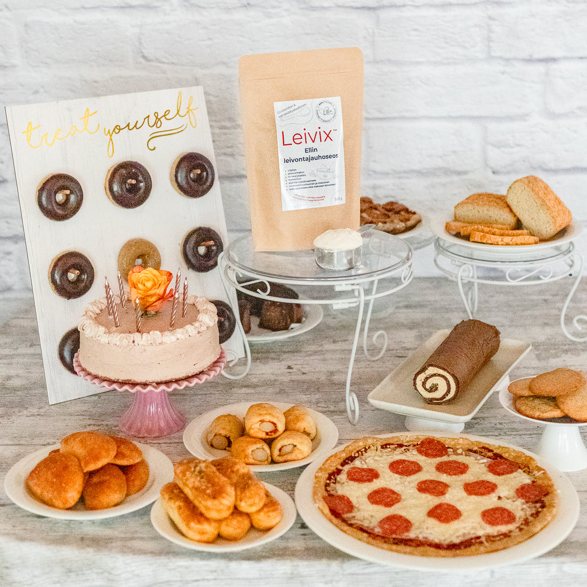 Leivix® on seuraava askel vähähiilihydraattisessa ja gluteenittomassa leivonnassa. Siinä yhdistyy vuosien kokemus sekä ravitsemuksesta että reseptinkehittelystä, lukuisat testikerrat ja intohimo kehittää leivontajauho, joka todella toimii. Kun tartut Leivix®-pussiin, tiedät, että voit leipoa melkeinpä mitä tahansa ja onnistua. Siksi uskallan sanoa: Leivix® on markkinoiden paras vähähiilihydraattinen leivontajauhoseos.